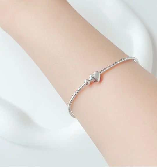 This delicate sterling silver bracelet features a vintage-inspired heart charm, perfect for adding a touch of love and elegance to your daily wear or special occasions. Ideal for gifting.