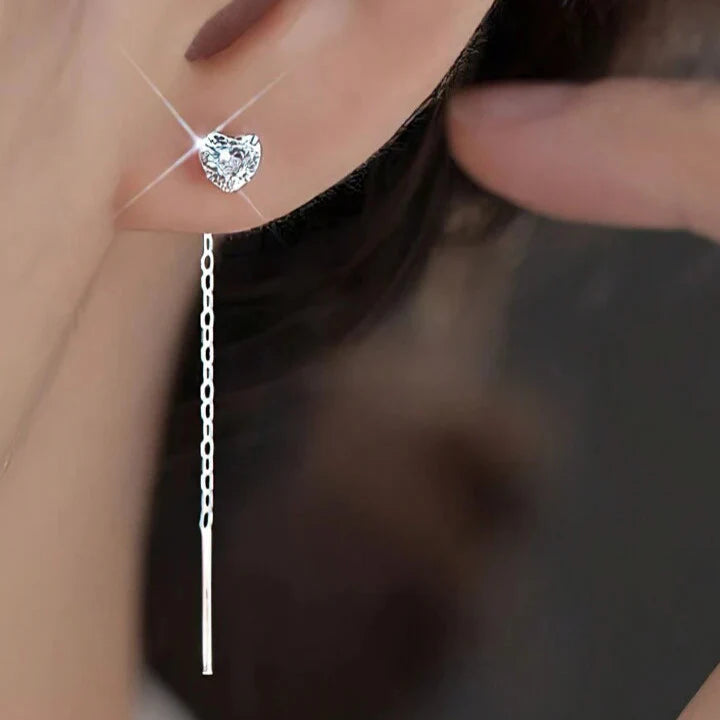 Make every moment feel special with the Liora | Elegant Heart Threaders | Silver Earrings. These heart-shaped cubic zirconia drop earrings are delicately designed with a sleek chain threader style that adds sophistication to any look. The sparkling centerpiece and refined silhouette make them the perfect everyday accessory or a thoughtful gift for Valentine's Day, anniversaries, and other cherished occasions.