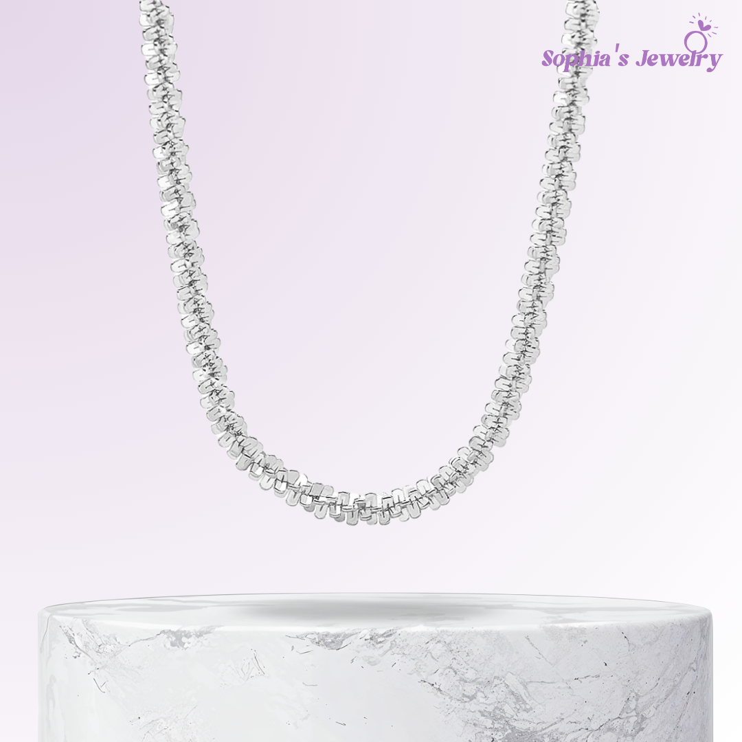 The Georgia Timeless Glitter Silver Necklace brings a dash of refined sparkle to any outfit. Its minimalist design exudes elegance while maintaining an air of subtle charm for everyday wear.
