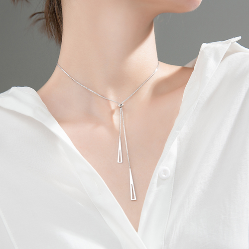 This silver necklace effortlessly elevates your ensemble. Its Y-shaped pendant exudes modern elegance, making it an ideal choice for those who appreciate clean lines and timeless design in their jewelry.