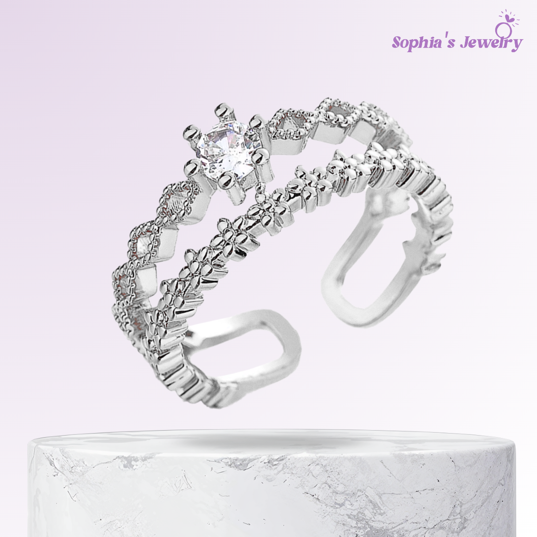 Designed for a custom fit, this ring features an adjustable band that ensures comfort while maintaining its chic, timeless appearance, making it ideal for daily wear or special occasions.